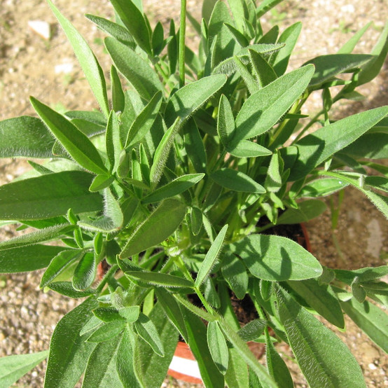 Potted plant without blooms w/compound leaves: "Coreopsis grandiflora 02" by José Luis Gálvez is licensed under Creative CommonsAttribution-Share Alike 2.5 Generic.