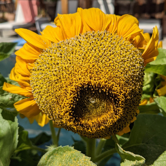 The plants are healthy and thriving, however, they do require a greater amount of water than I expected. Being in a container, they are requiring a few minutes of water everyday. By contrast, we have standard sunflowers planted in the ground that need much less, because the soil retains more moisture. Sunflowers are known to need a great amount of water while they are in their growth period, however in California, there are wayside sunflowers, particularly along I-5 in the Great Central Valley that are not receiving any supplemental water that I can observe. Small flowers and heavily branched with prolific blooms, it is unclear if roadside sunflowers are mutants from the standard species used in farming or something entirely different. More research, unless someone out there would like to share their knowledge.